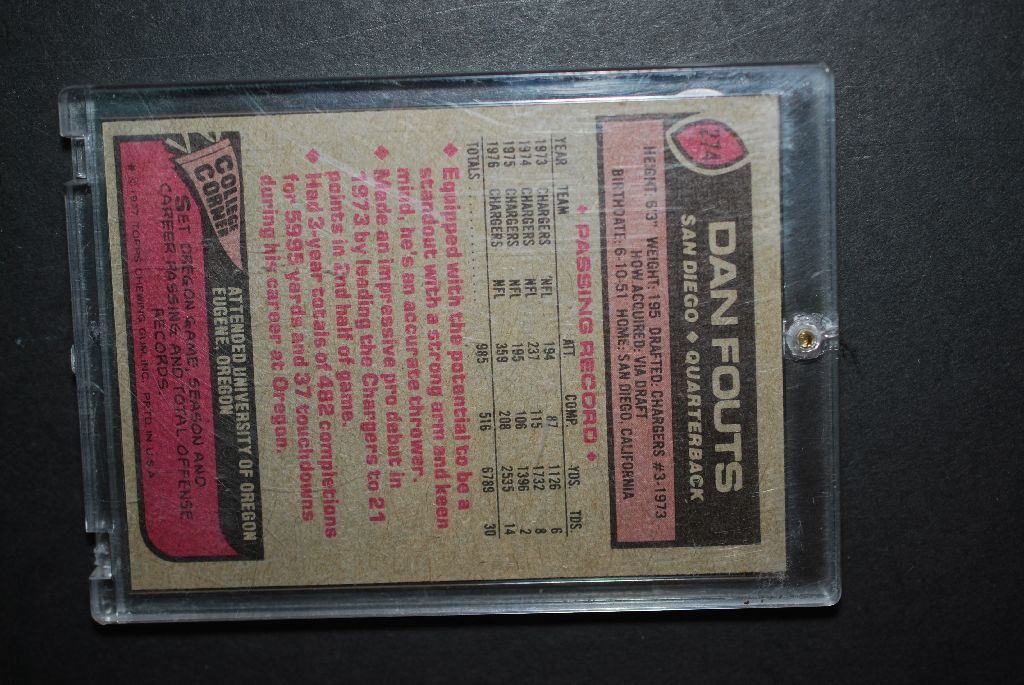 1977 NFL Dan Fouts San Diego Chargers Football Trading Card In Display Case; EST. $5-10