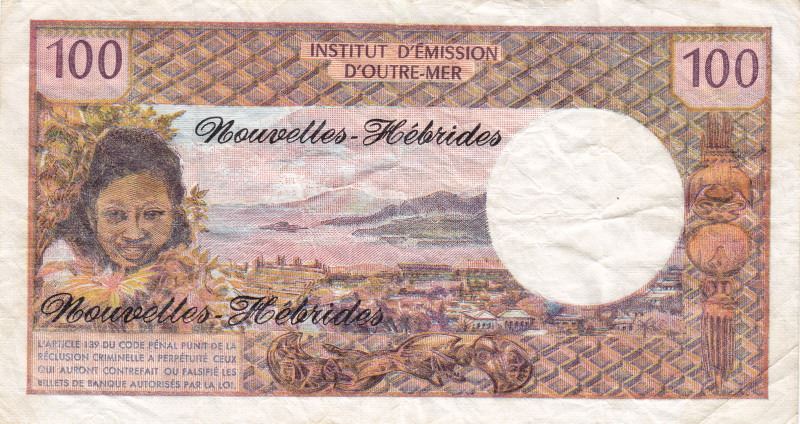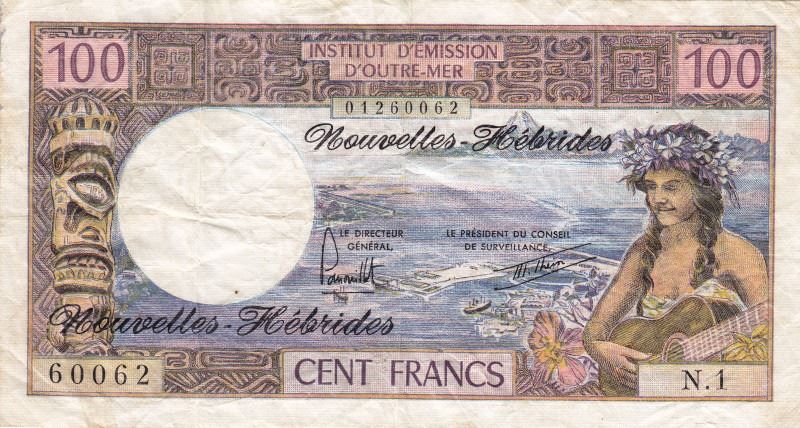 1977 New Hebriders 100 Francs Bank Note - Signature #3