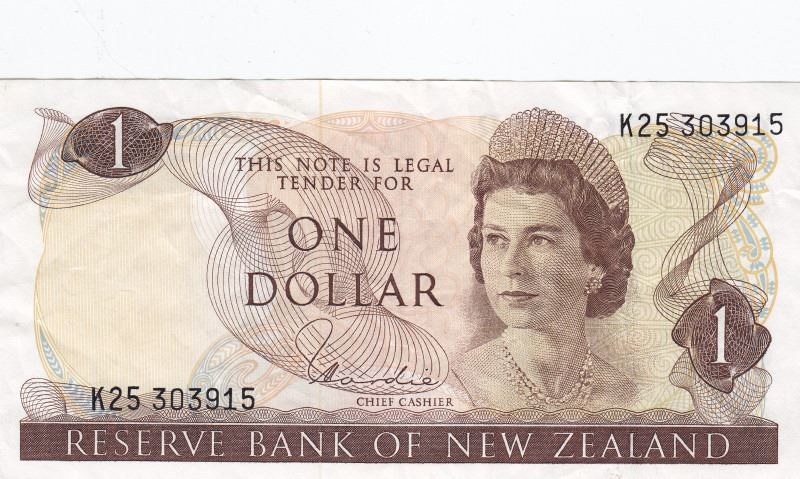 1977 Reserve Bank Of New Zealand $1 Dollar Bank Note - Book Value $15