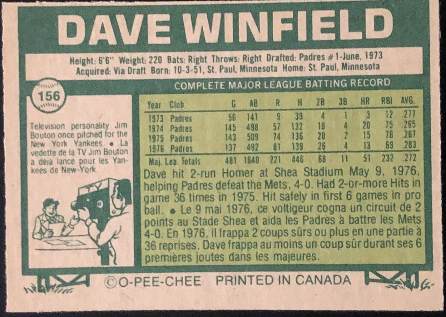 Card #156 OPC, baseball, MLB, vintage, hall of fame