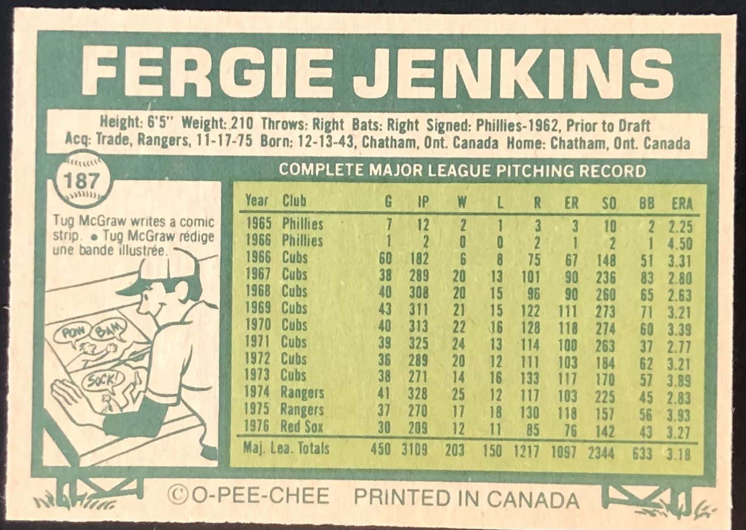 Card #187 MLB, baseball, OPC, vintage, hall of fame