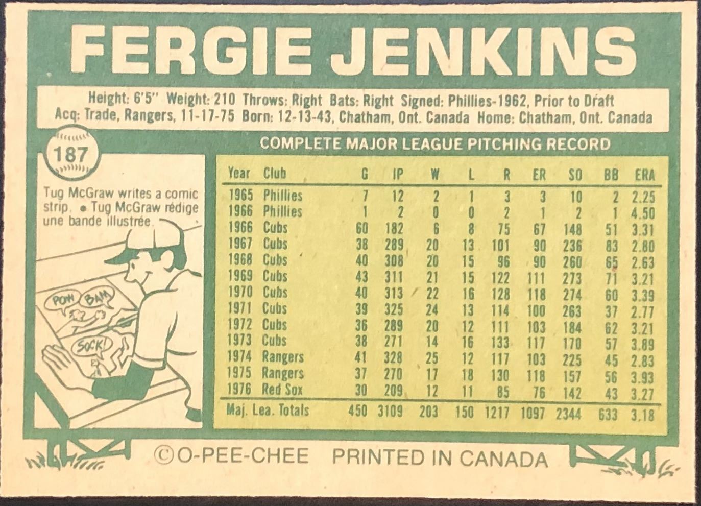Card #187 MLB, baseball, vintage, OPC, hall of fame