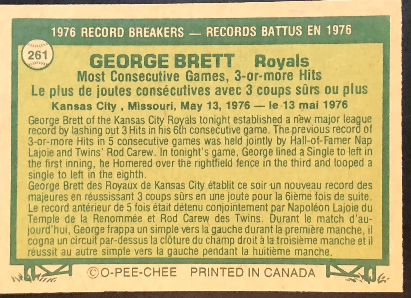 Card #261 OPC, baseball, vintage, hall of fame
