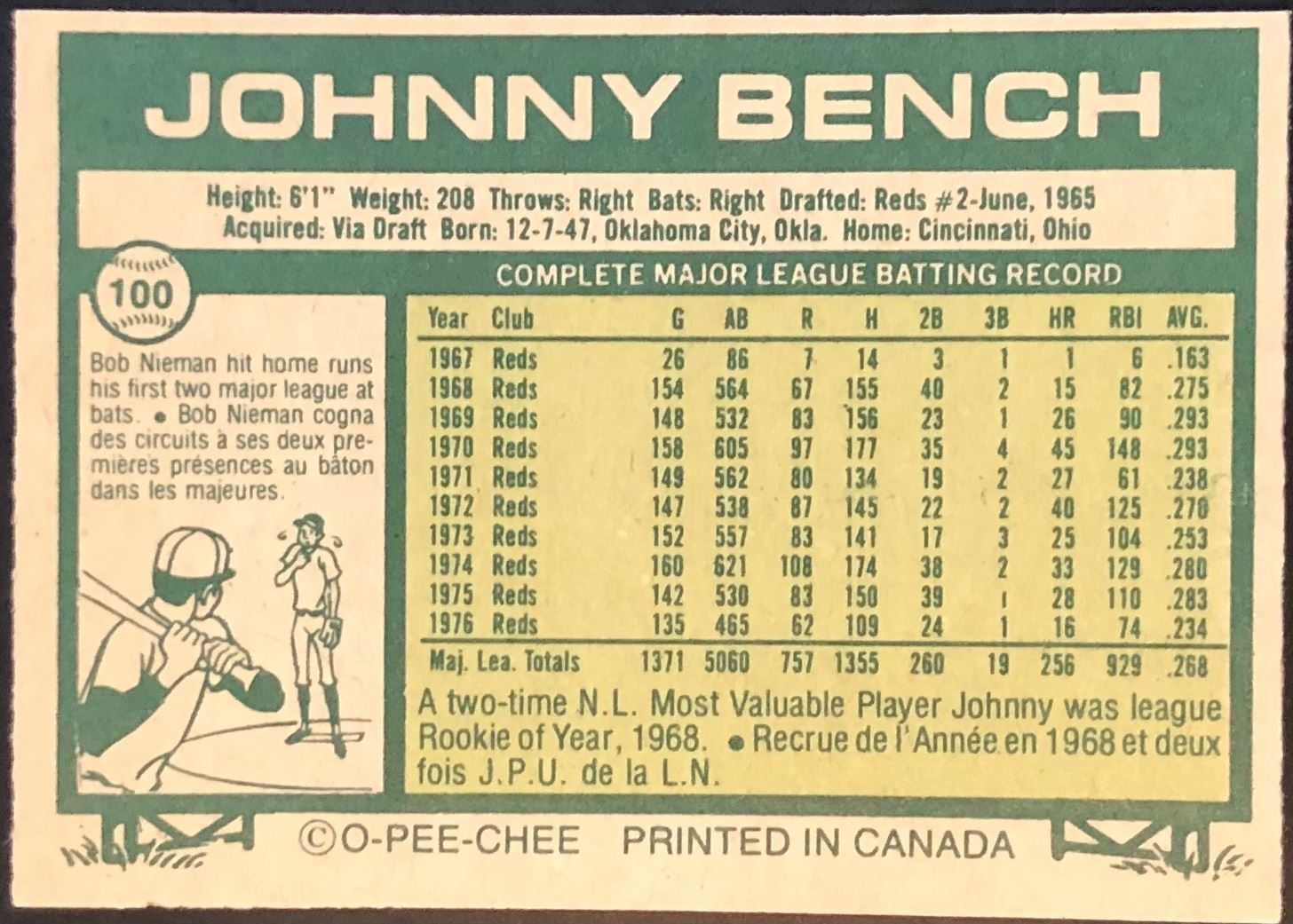 Card #100 MLB, baseball, vintage, OPC, hall of fame