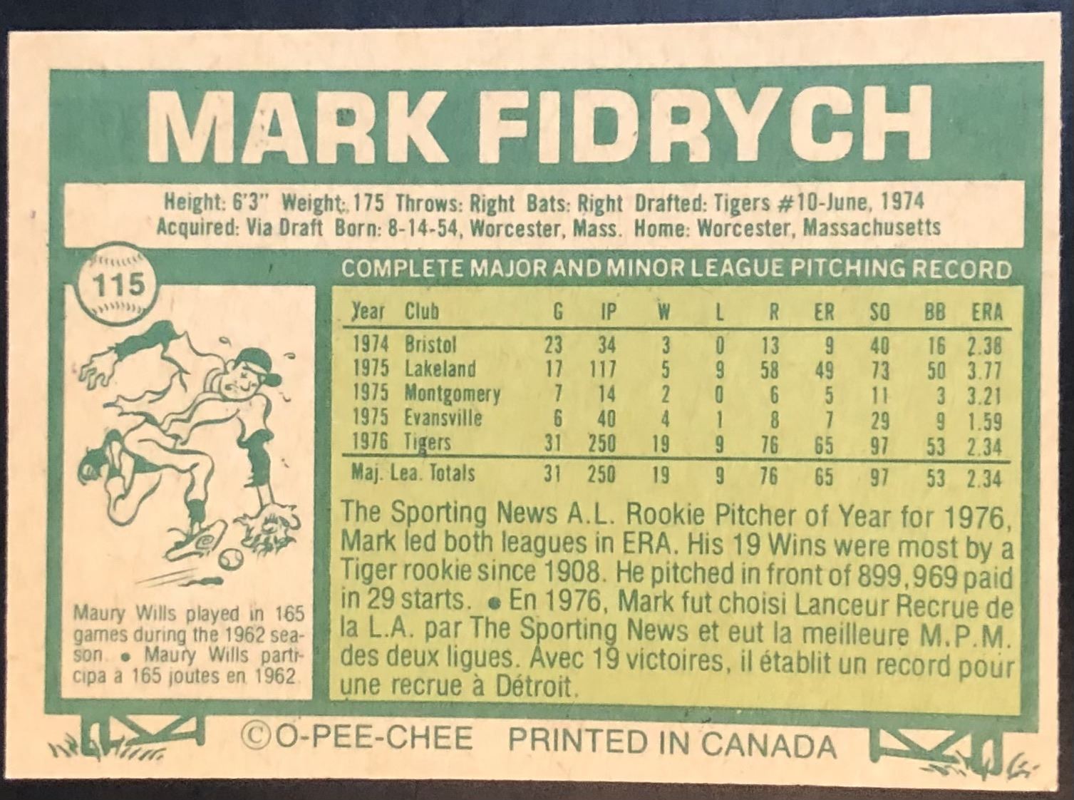 Card #115 MLB, baseball, OPC, vintage, rookie