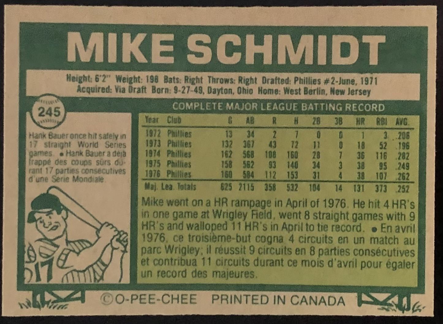 Card #245 MLB, baseball, OPC, vintage, hall of fame