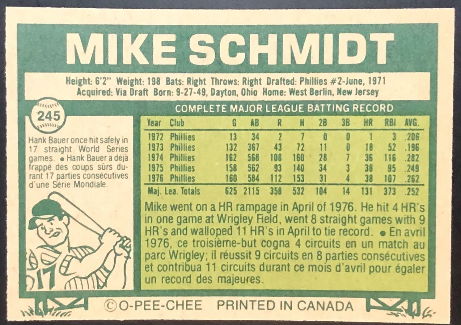 Card #245 OPC, vintage, MLB, baseball, hall of fame