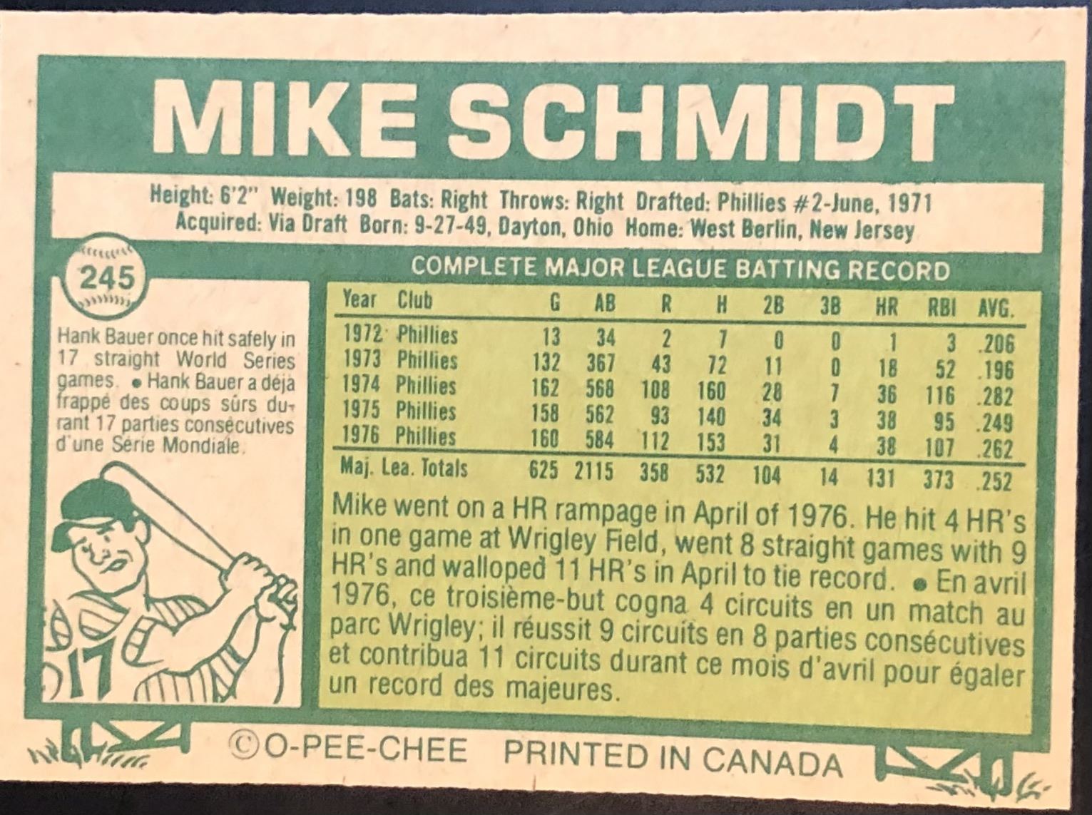 Card #245 MLB, baseball, OPC, vintage, hall of fame