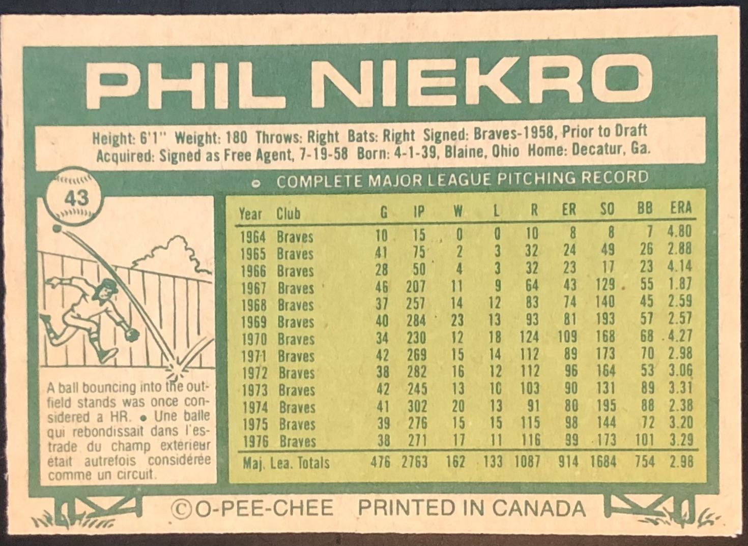 Card #43 MLB, baseball, vintage, OPC, hall of fame