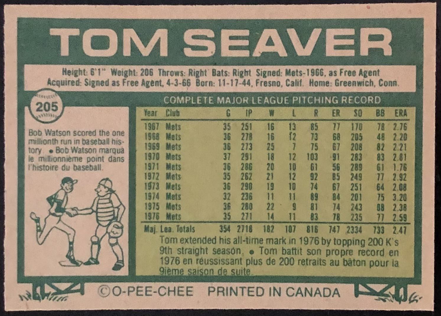Card #205 MLB, baseball, OPC, vintage, hall of fame