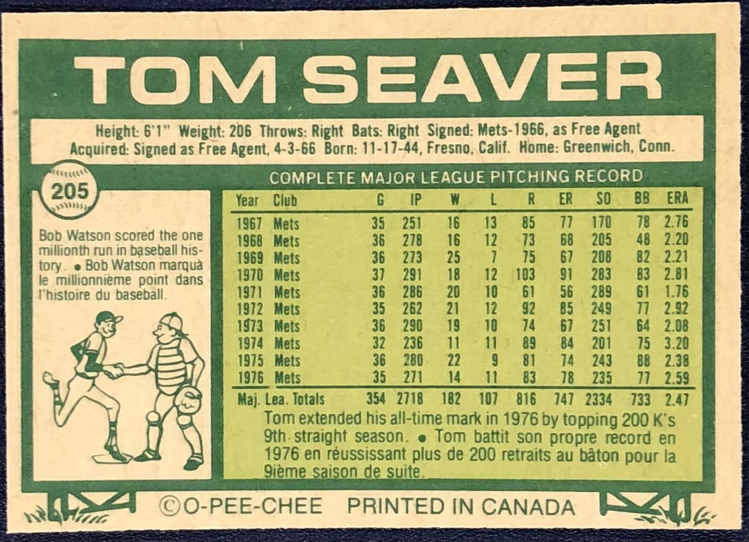 Card #205 MLB, baseball, vintage, OPC, hall of fame