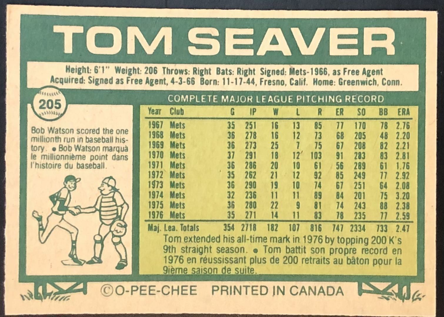 Card #205 OPC, vintage, MLB, baseball, hall of fame