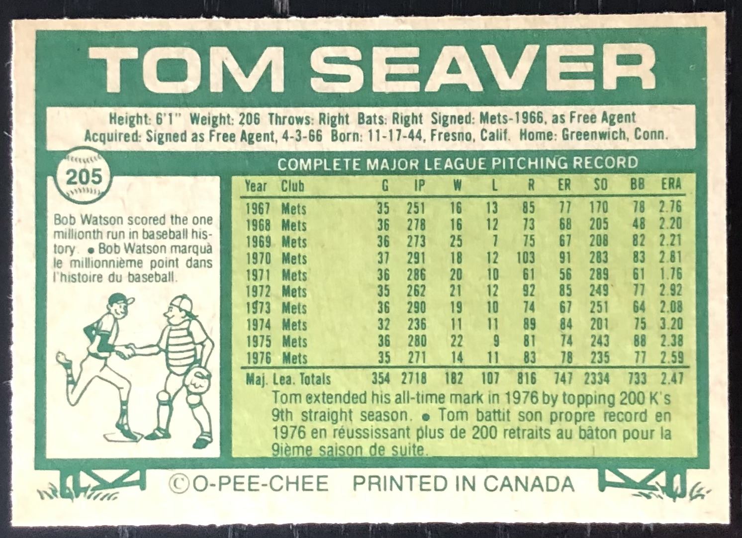 Card#205 vintage, MLB, baseball, OPC, hall of fame