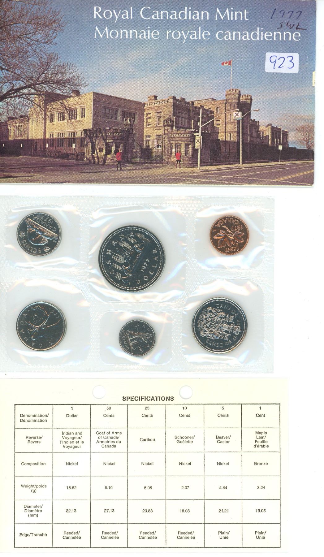 1977 Proof Like Set. Dollar has Short Water Lines in front of canoe. 6-coin set.