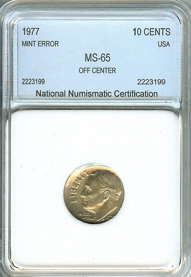 1977 ROOSEVELT DIME NNC MS65 OFF CENTER ERROR