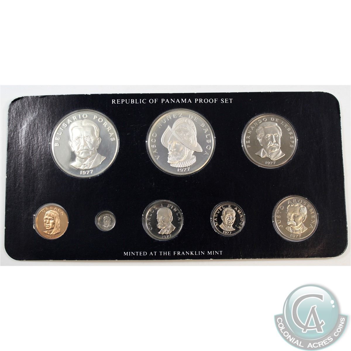 1977 Republic of Panama 8-coin Proof Set. Please note coins may contain faint toning.