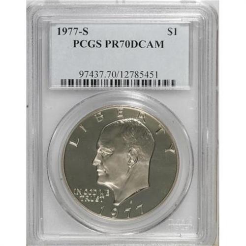 <B>1977-S $1 PR70 Deep Cameo PCGS.</B></I> The ultimate quality, this perfect proof has deeply mirrored fields around lustrous and frosty devices, imparting amazing contrast on both sides. Unimprovable quality with just 12 similar examples in PCGS holder. The connoisseur of modern issue coinage will be delighted.<BR><BR><b>Shipping:</b> Coins & Currency (<a target="_blank" href="http://www.heritageauctions.com/common/shipping.php">view shipping information</a>)