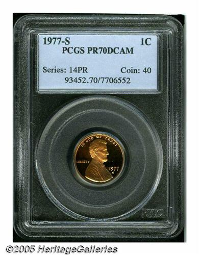 <B>1977-S<1C> PR70 Red Deep Cameo PCGS.</B></I> An eye-catching representative with heavily frosted features and just a hint of orange patina. Population: 11 in 70 (6/05).<BR><I>From The William Bickel Collection, Part One.</B></I>