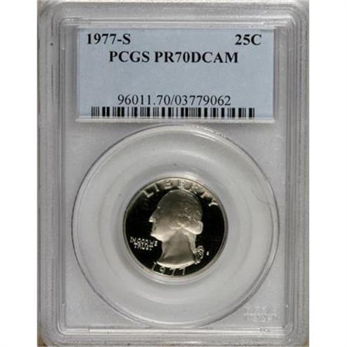 <B>1977-S 25C PR70 Deep Cameo PCGS.</B></I> PCGS Population (48/0). NGC Census: (3/0). Numismedia Wsl. Price for NGC/PCGS coin in PR70: $350. (#96011)<BR><BR><b>Shipping:</b> Coins & Currency (<a target="_blank" href="http://www.heritageauctions.com/common/shipping.php">view shipping information</a>)