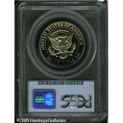 <B>1977-S 50C PR70 Deep Cameo PCGS.</B></I> The richly frosted devices seem to hang suspended on the surface of an illimitable pool of watery reflectivity. As expected for a specimen graded at Proof 70, the surfaces seem to be pristine. A small dark spot is noted in the hair Kennedy's ear. Population: 54 in 70 (1/05). Lot:8363