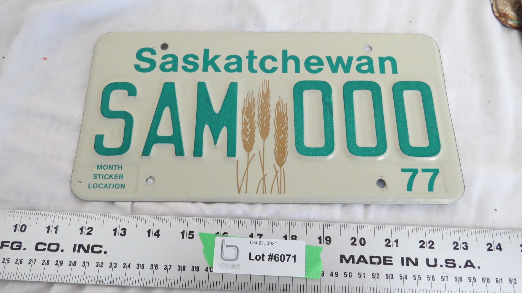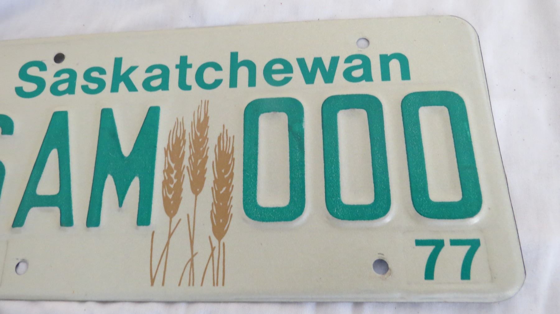1977 Sask Sample License Plate