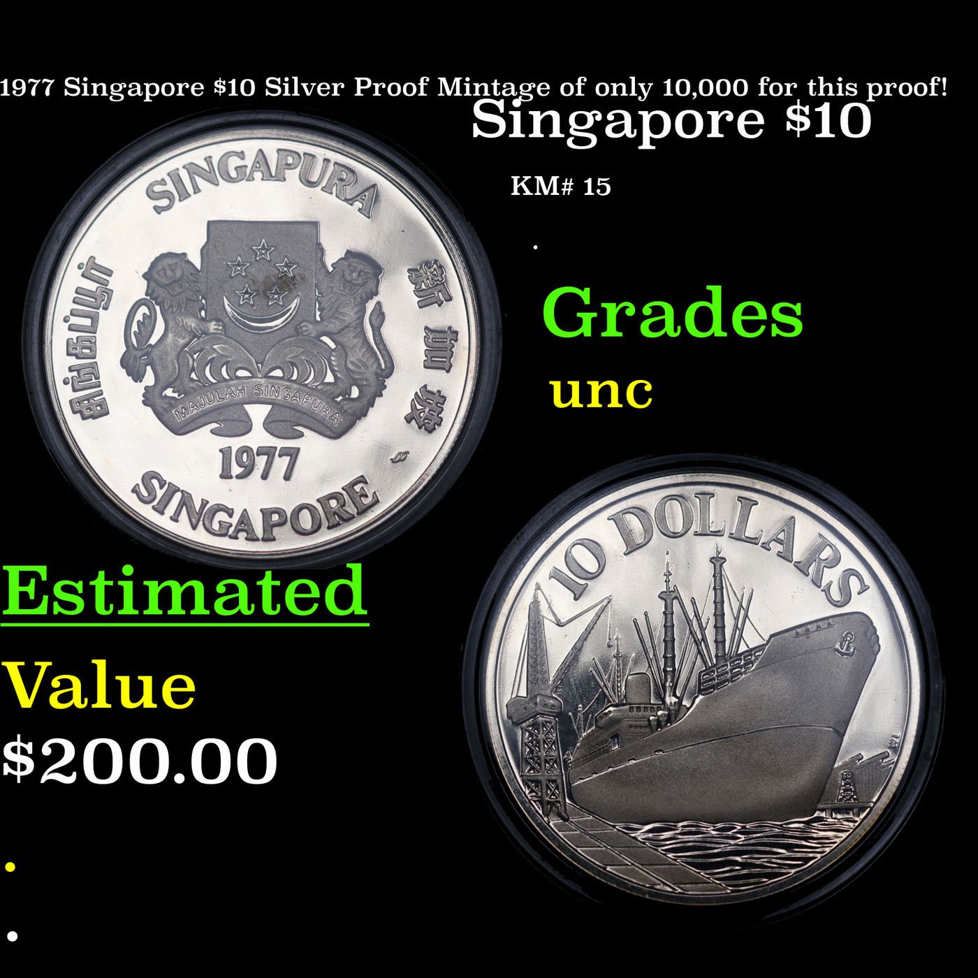 1977 Singapore $10 Silver Proof Mintage of only 10,000 for this proof! Grades GEM++ Proof Deep Cameo