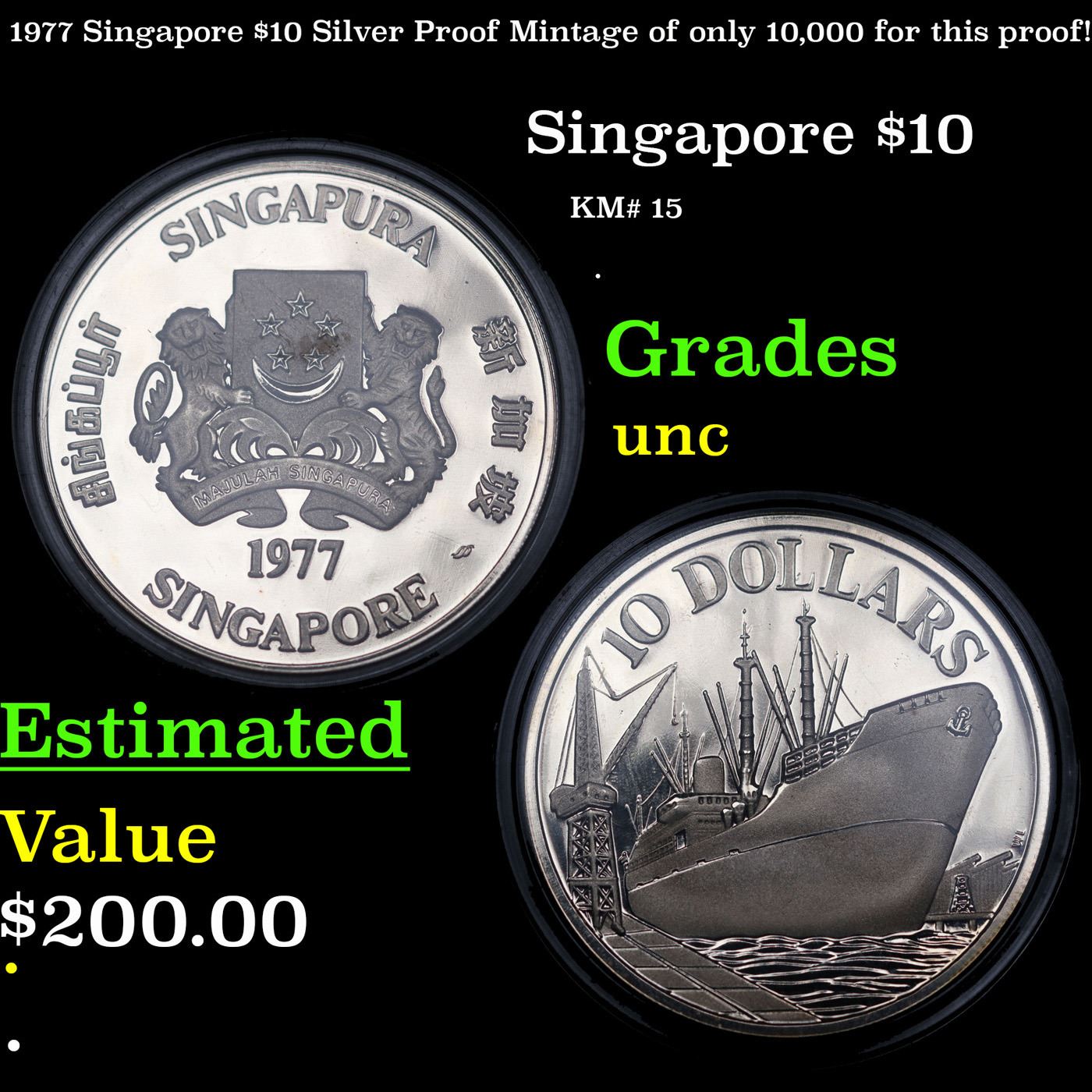 1977 Singapore $10 Silver Proof Mintage of only 10,000 for this proof! Grades GEM++ Proof Deep Cameo