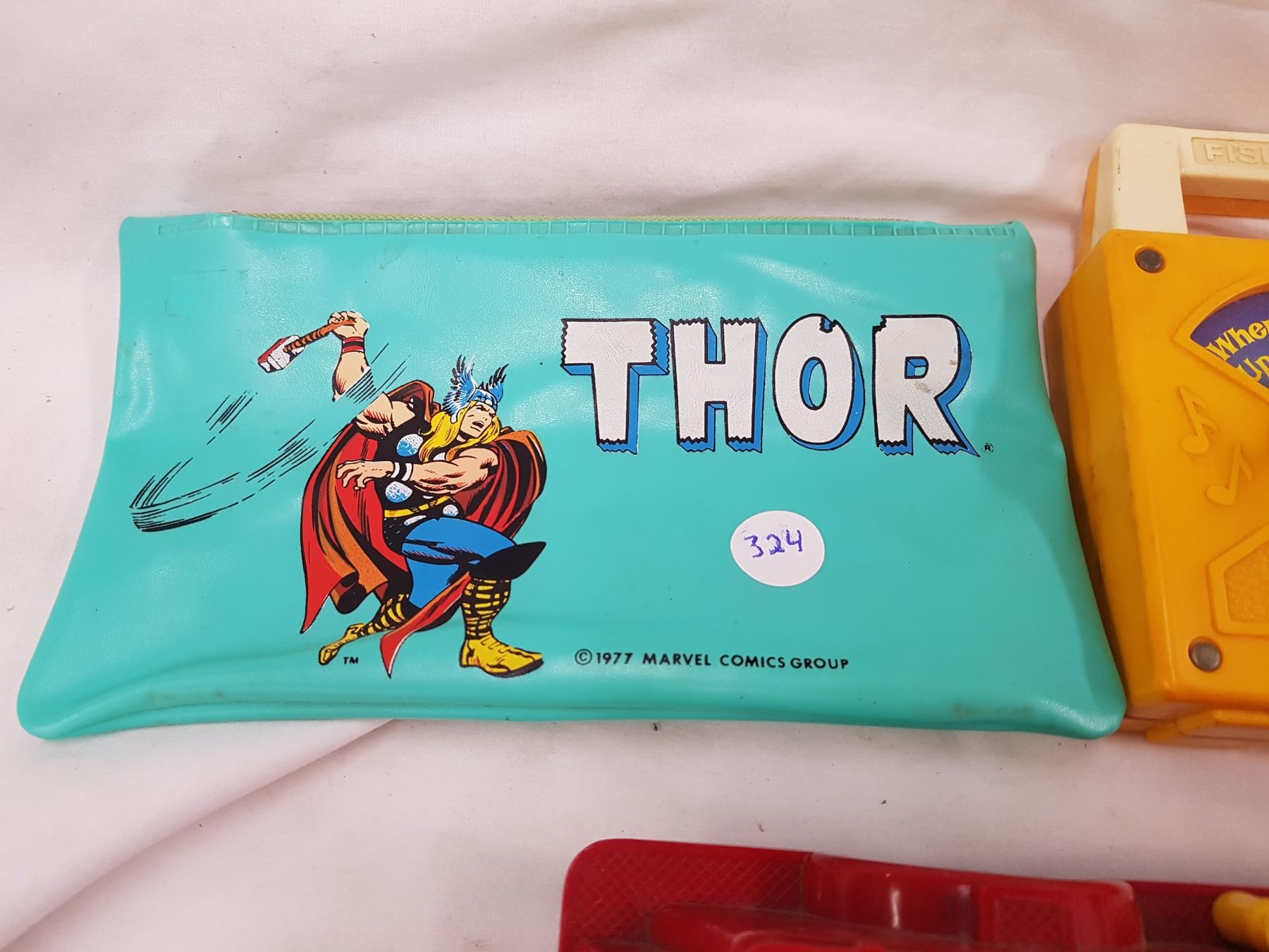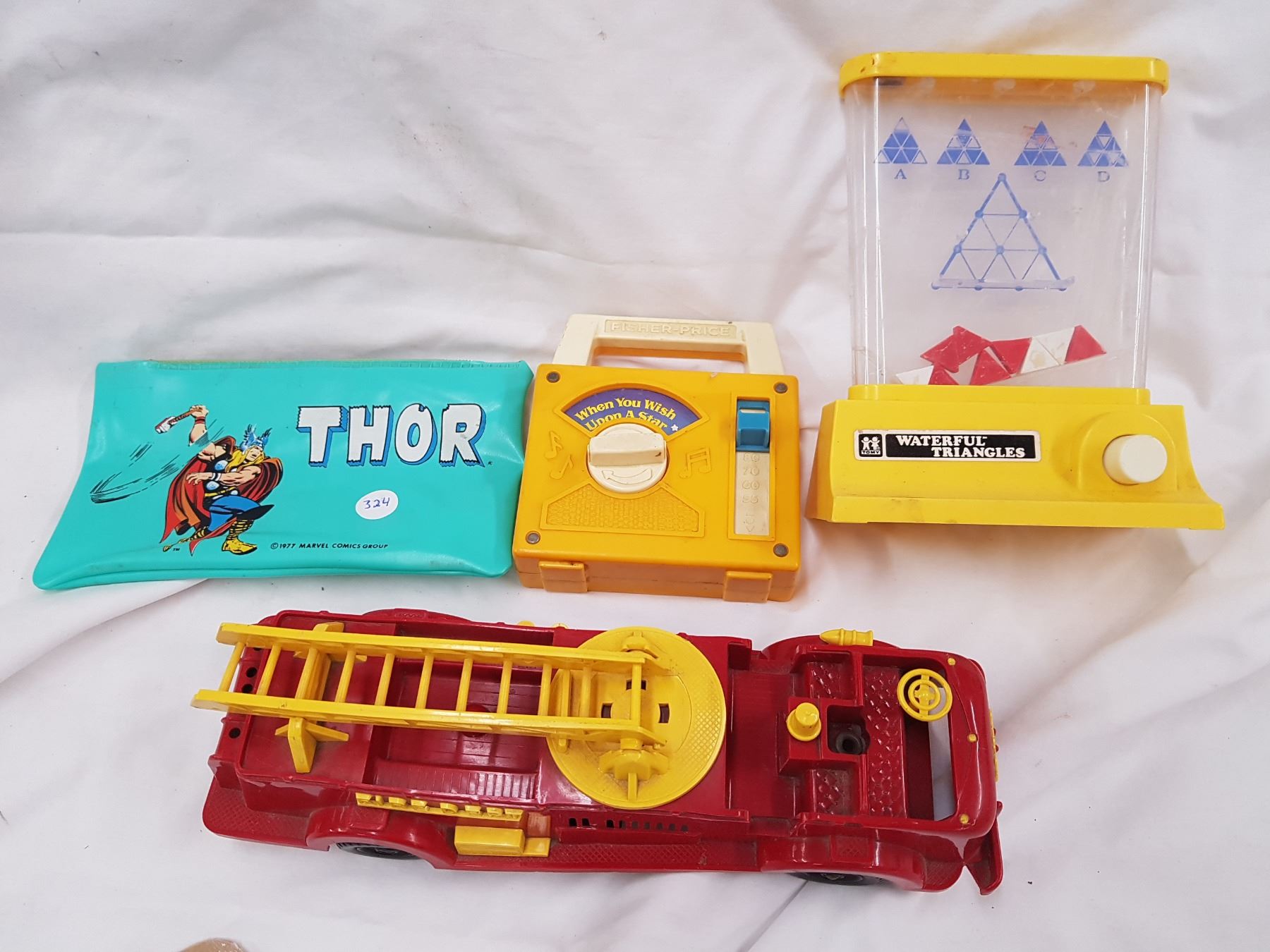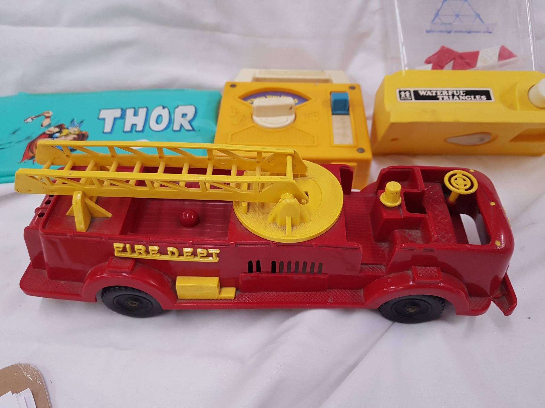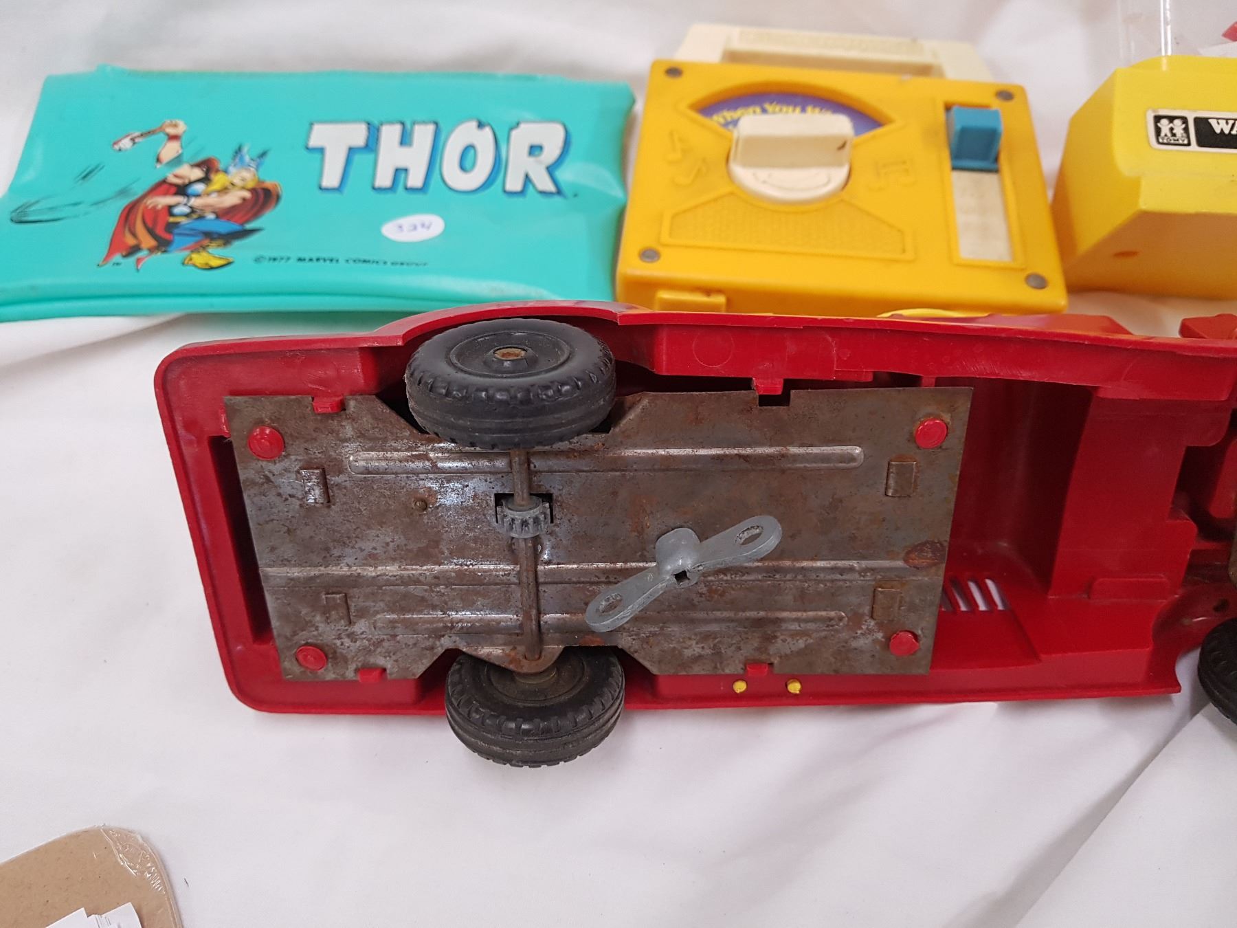 1977 THOR PENCIL CASE, WIND UP FIRE TRUCK ETC