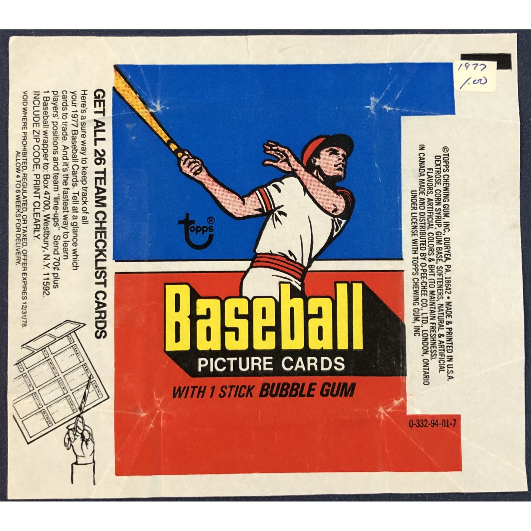 1977 TOPPS BASEBALL WRAPPER