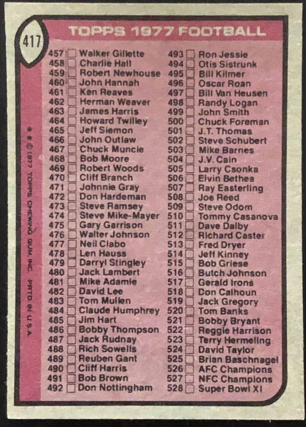 Card #417 NFL, football, vintage