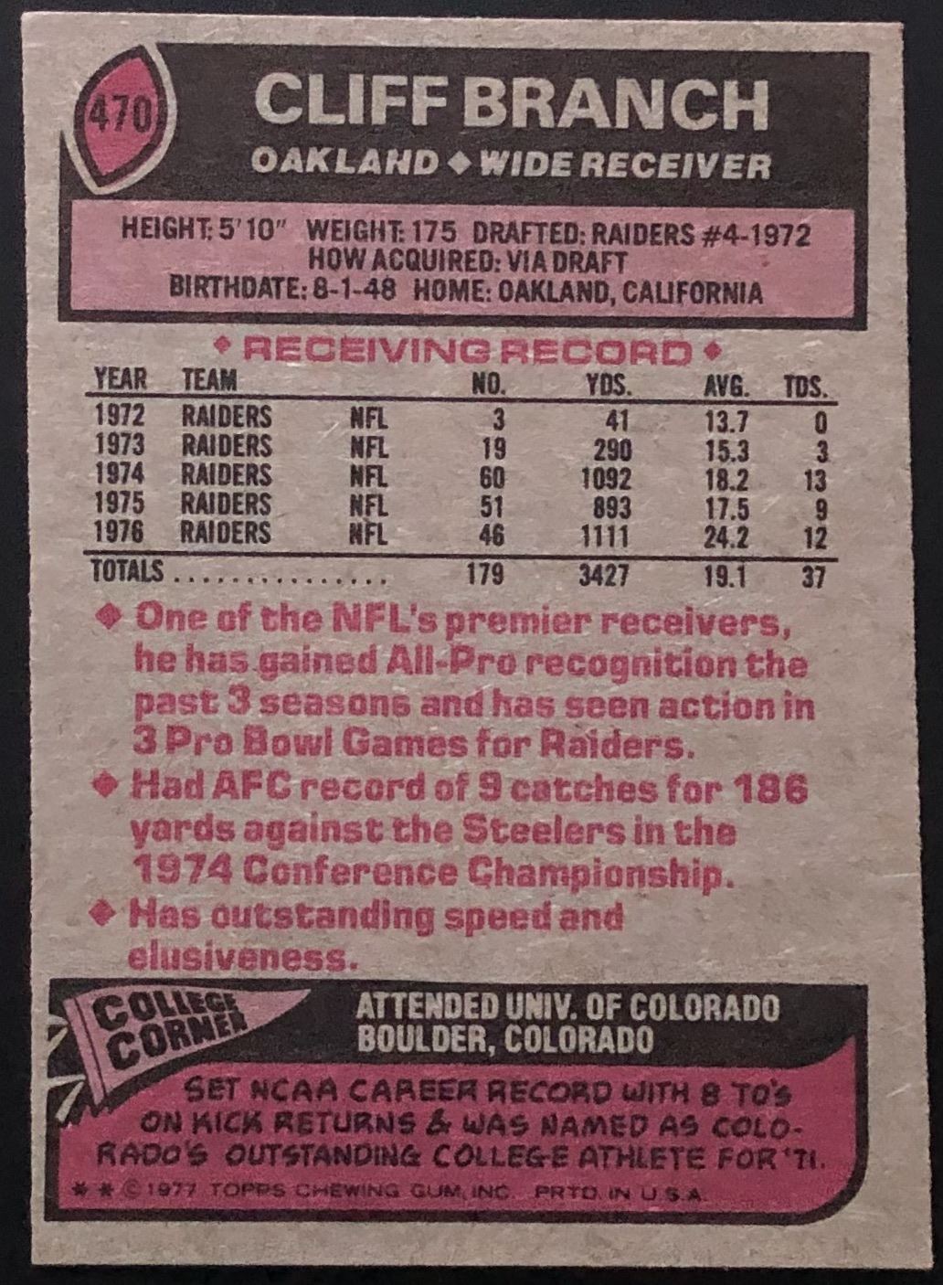 Card #470 NFL, football, vintage, hall of fame