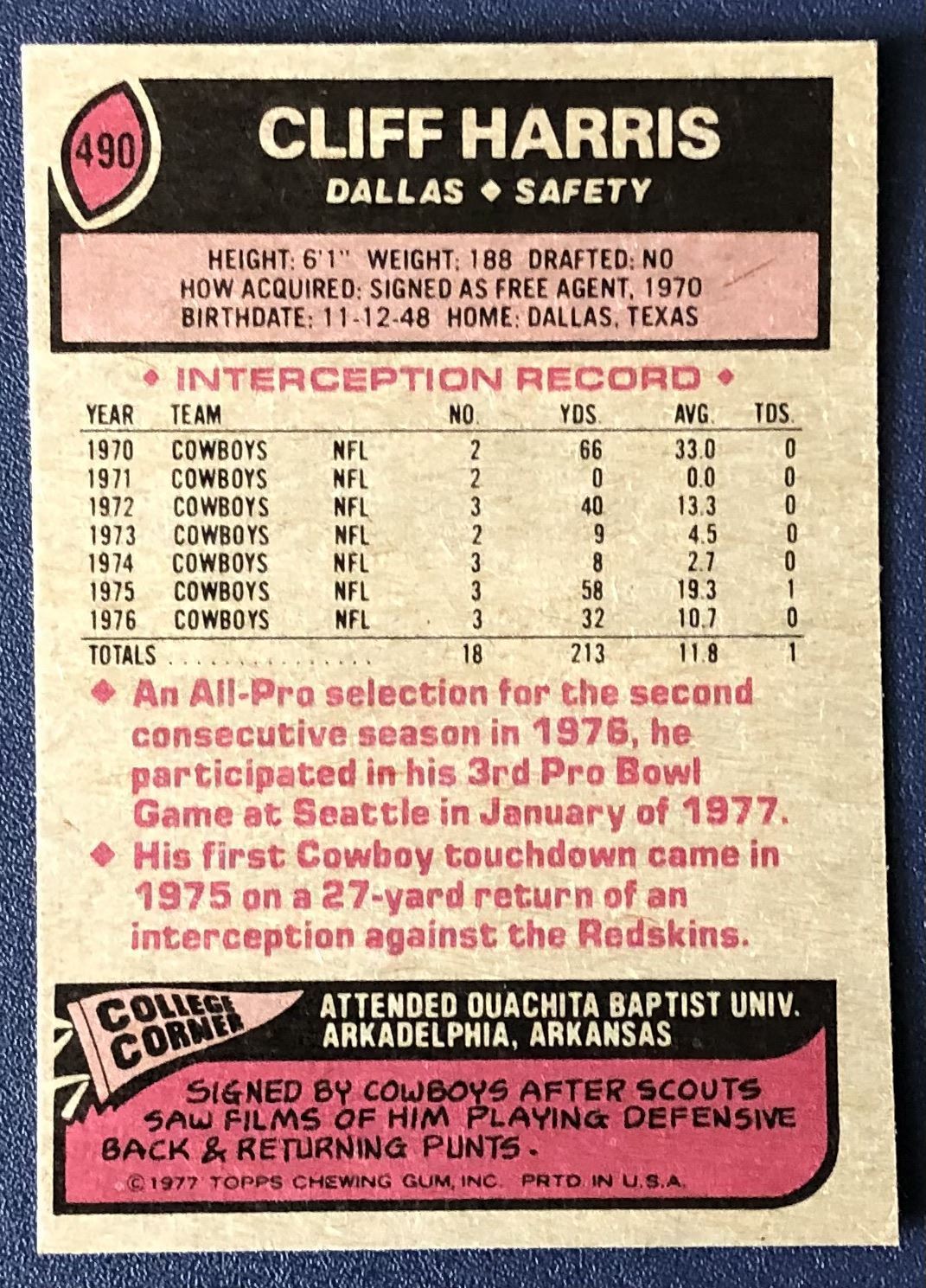 Card #490 NFL, football, vintage, hall of fame