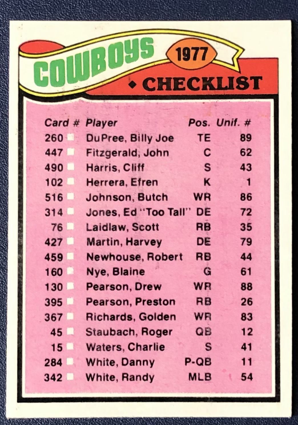 Card #207 NFL, football, vintage