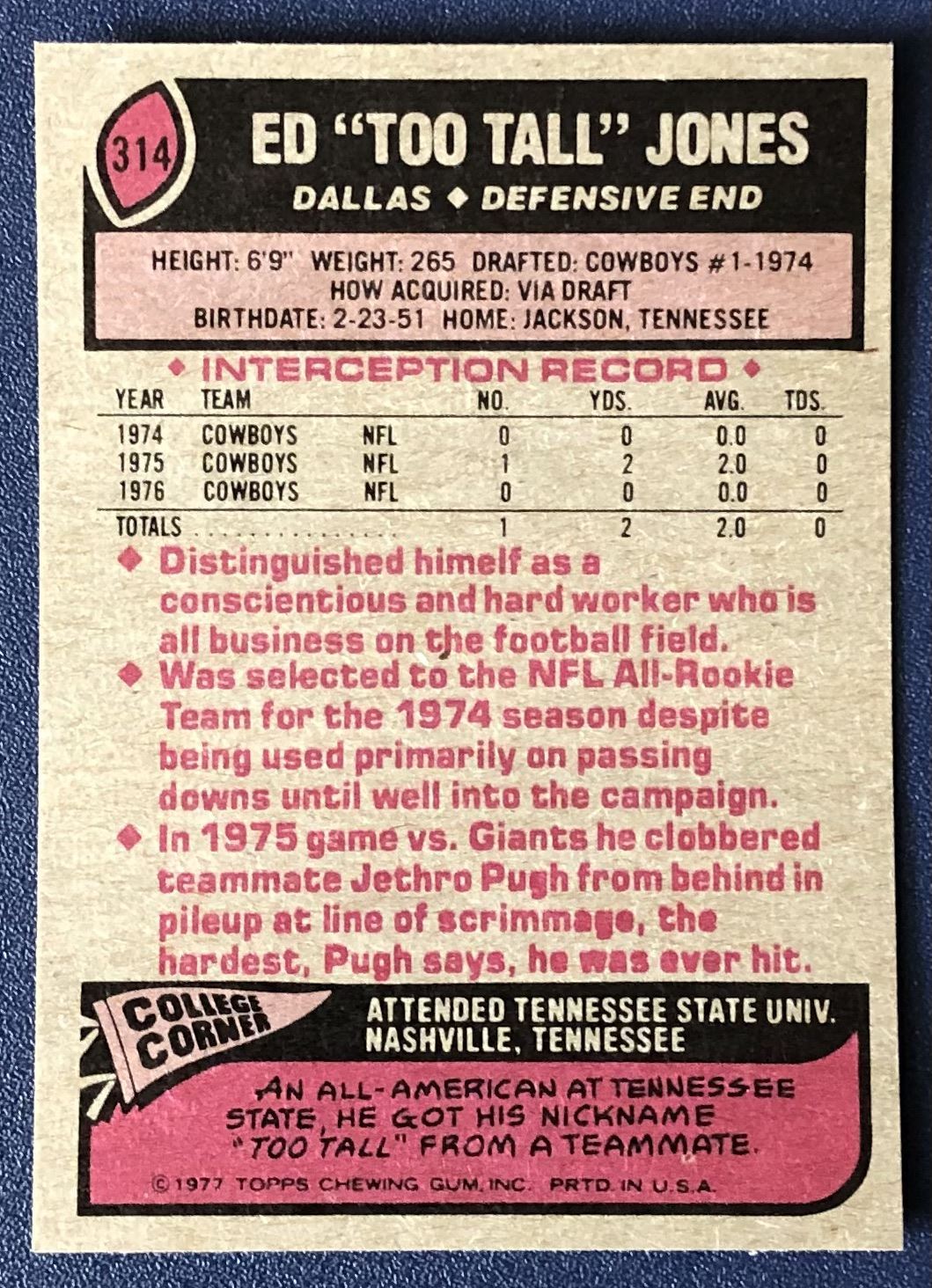 Card #314 NFL, football, vintage