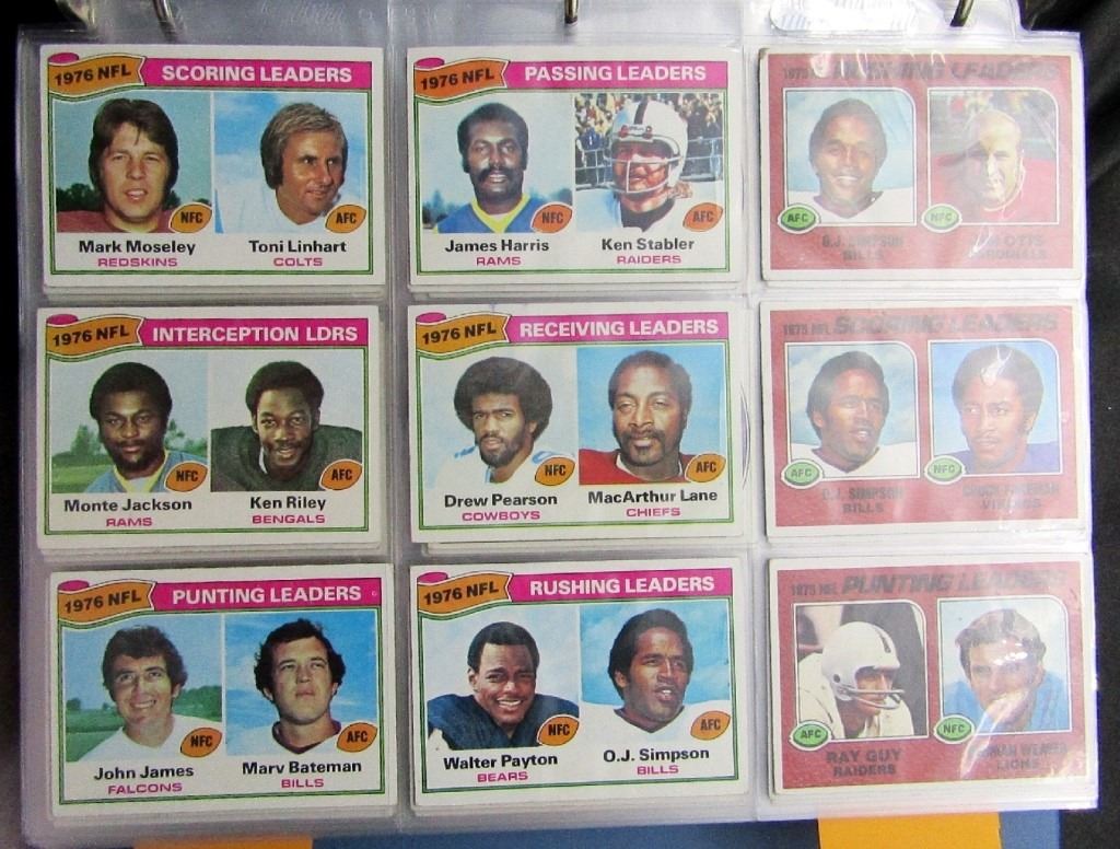 IN SHEETS/ALBUMS (392 CARDS) INCLUDES LARGENT VGEX & PAYTON EX++. PUT TOGETHER BY TEAMS PLUS (3)1976 T LDRS CARDS. OVERALL EX-EX+