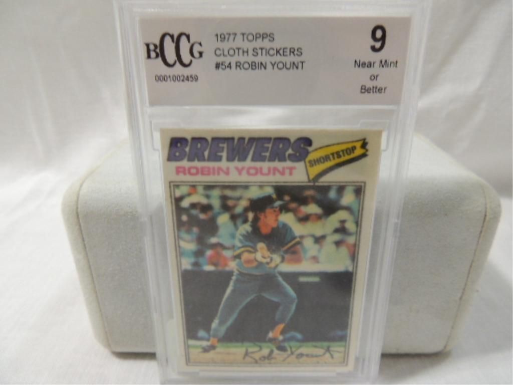 GRADED 1977 TOPPS CLOTH STICKERS #54 ROBIN YOUNT. GRADED 9