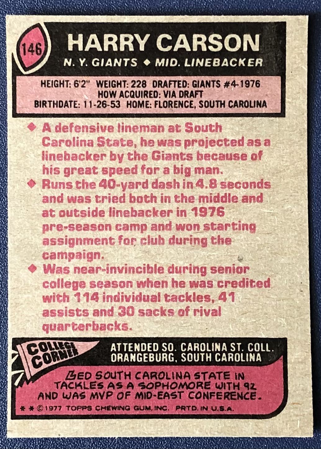 Card #146 NFL, football, vintage, hall of fame, rookie