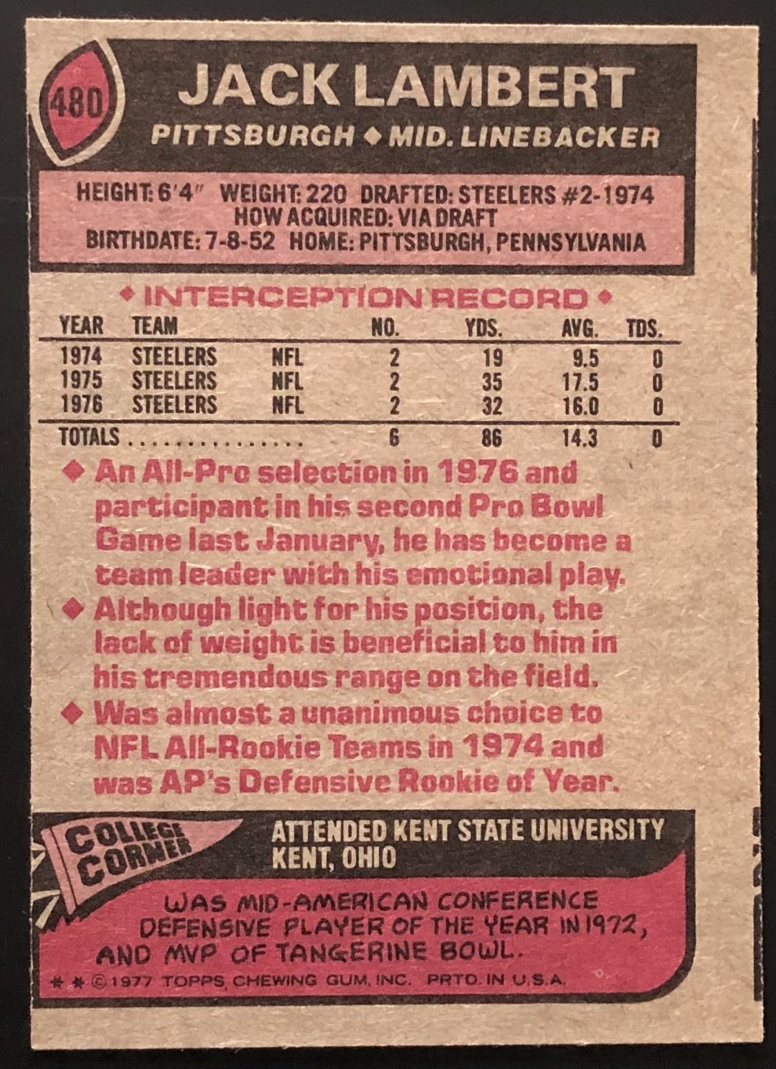 Card #480 NFL, football, vintage, hall of fame