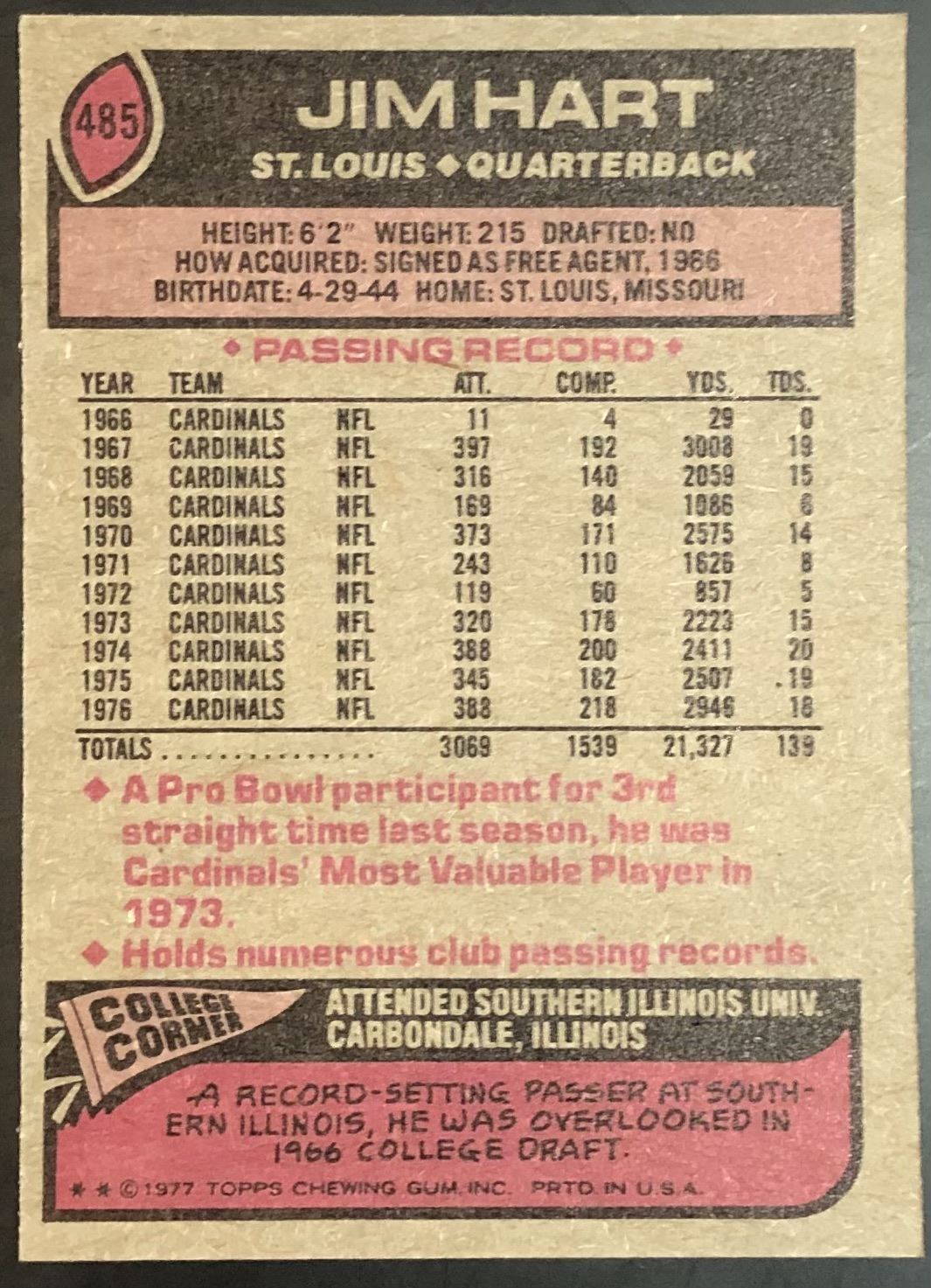 Card #485 NFL, football, vintage