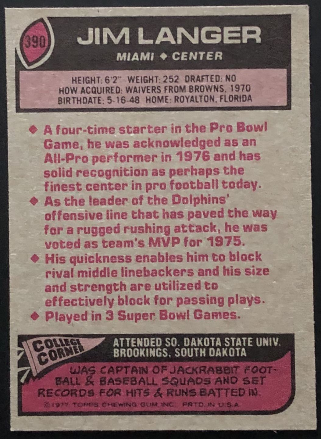 Card #390 NFL, football, vintage, hall of fame