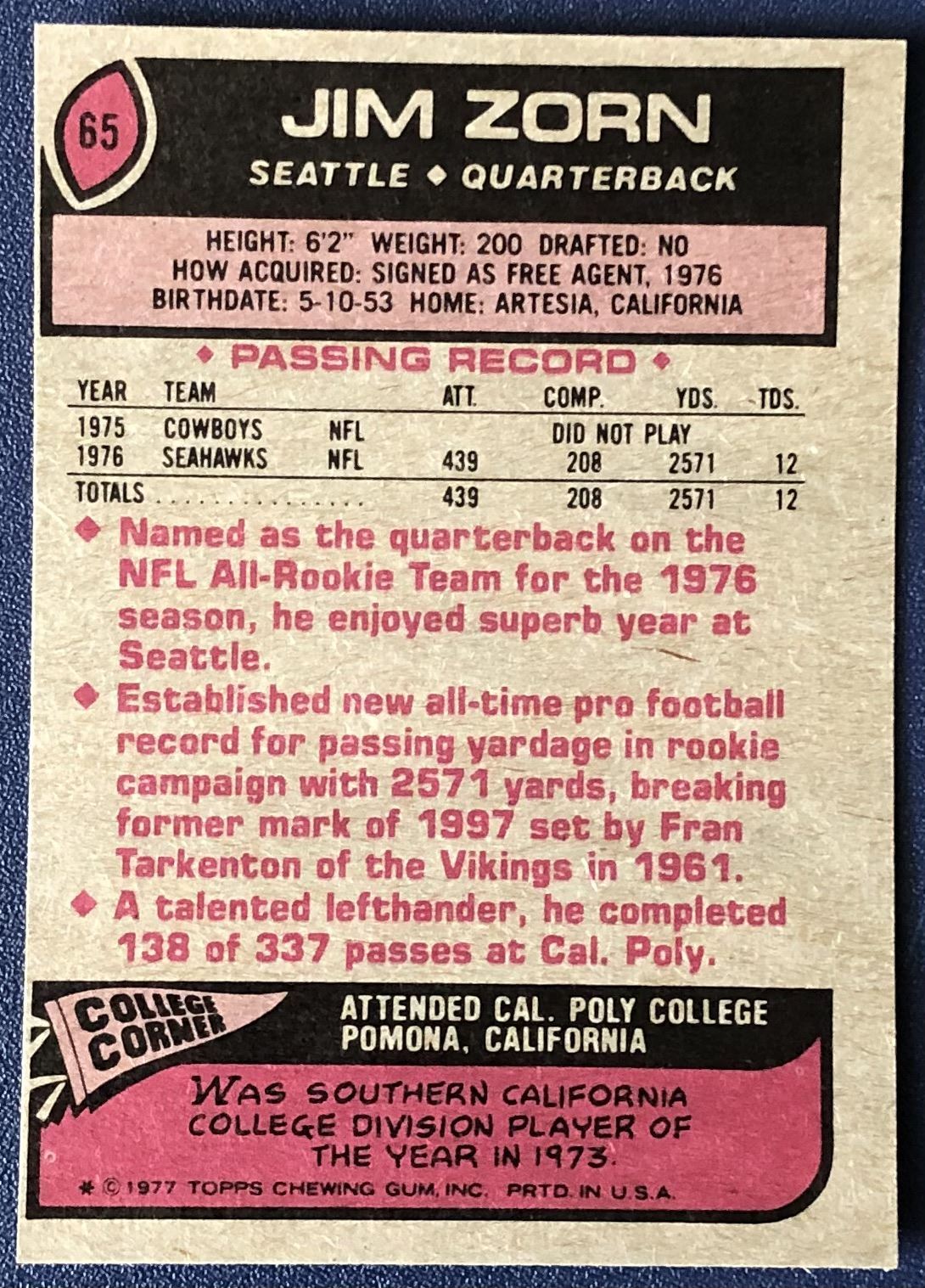 Card #65 NFL, football, vintage, hall of fame, rookie