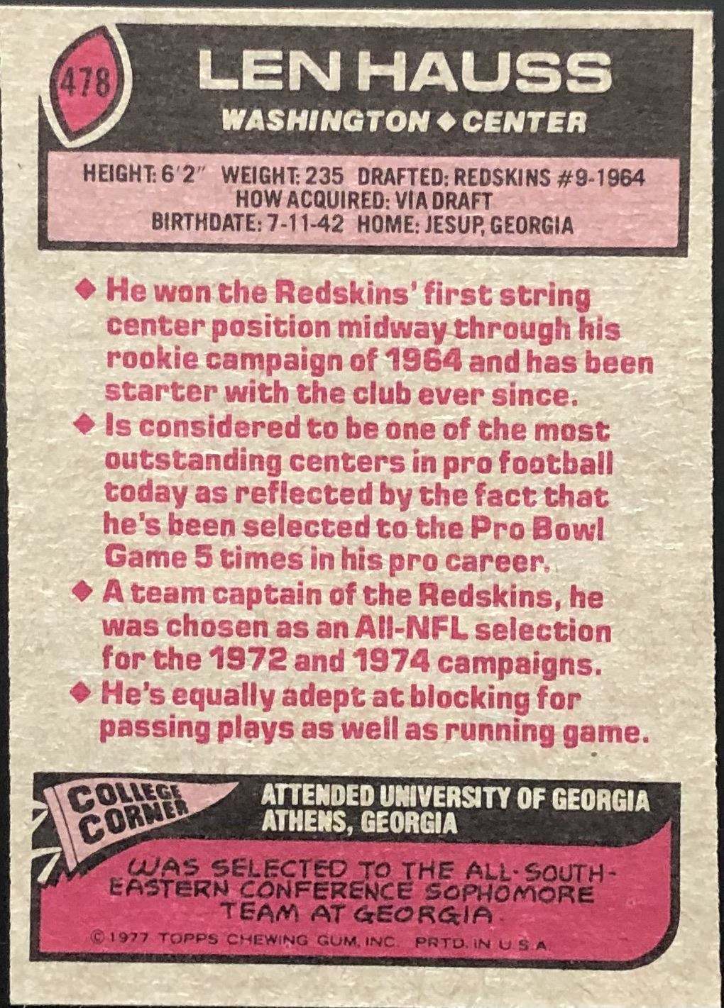 Card #478 NFL, football, vintage
