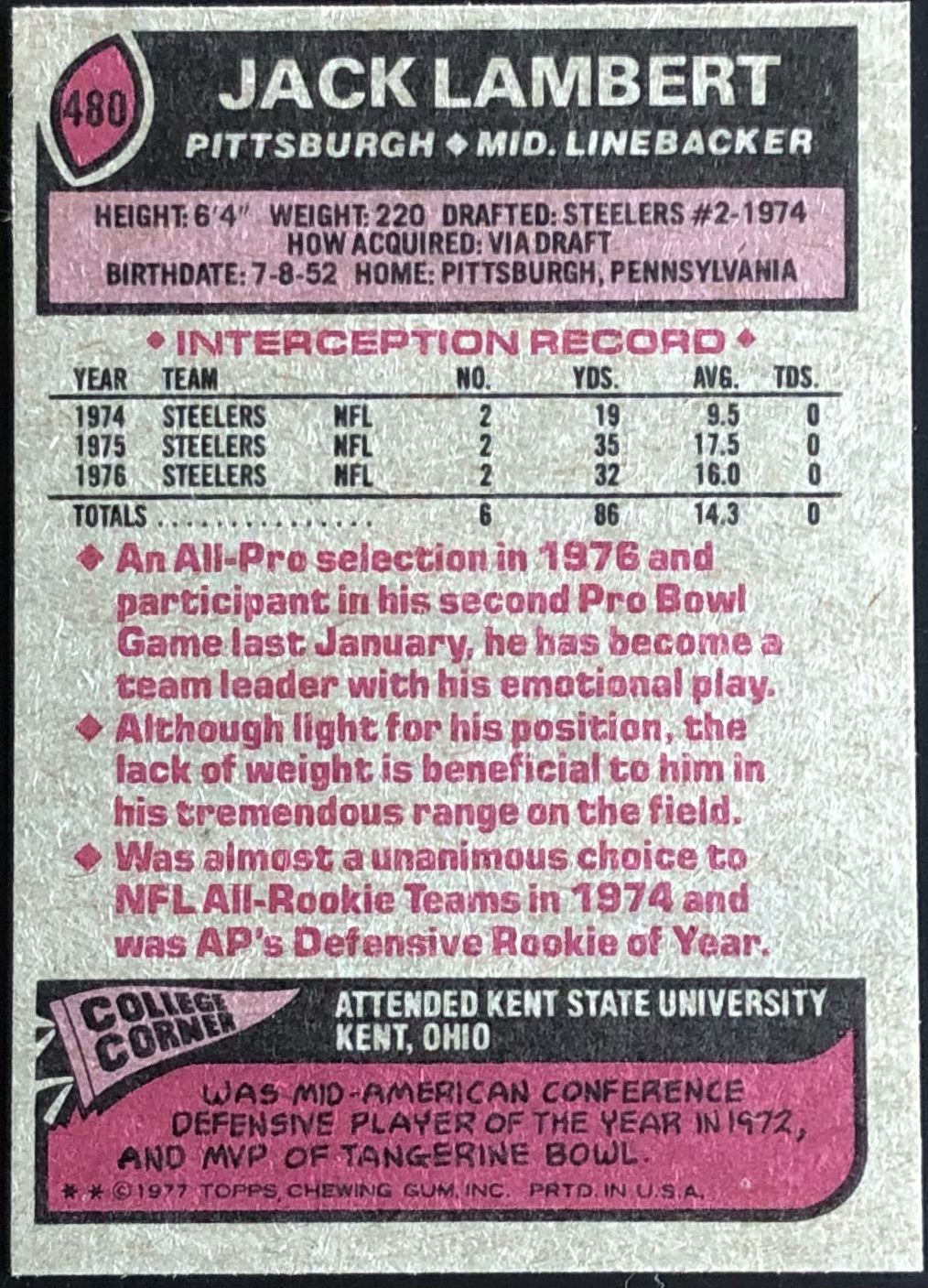 Card #480 NFL, football, hall of fame, vintage