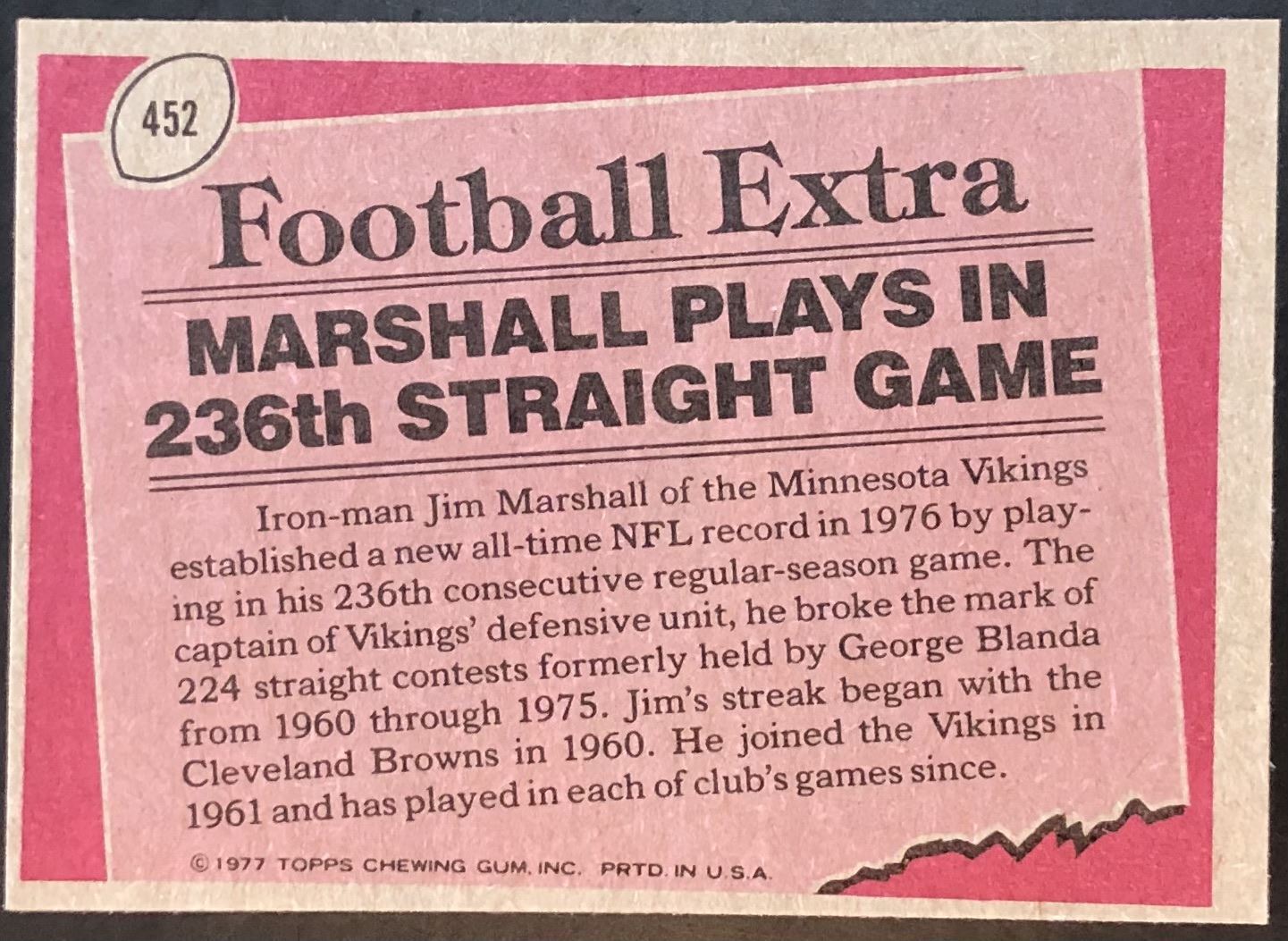 Card #452 NFL, football, vintage, hall of fame