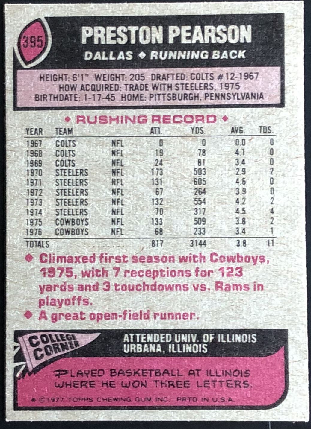 Card #395 NFL, football, vintage
