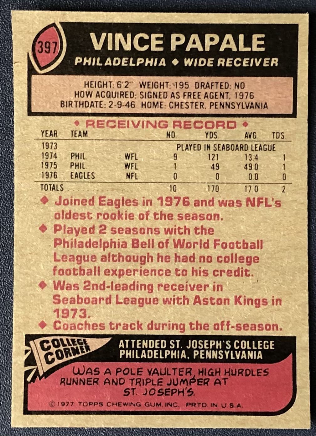 Card #397 NFL, football, vintage, hall of fame