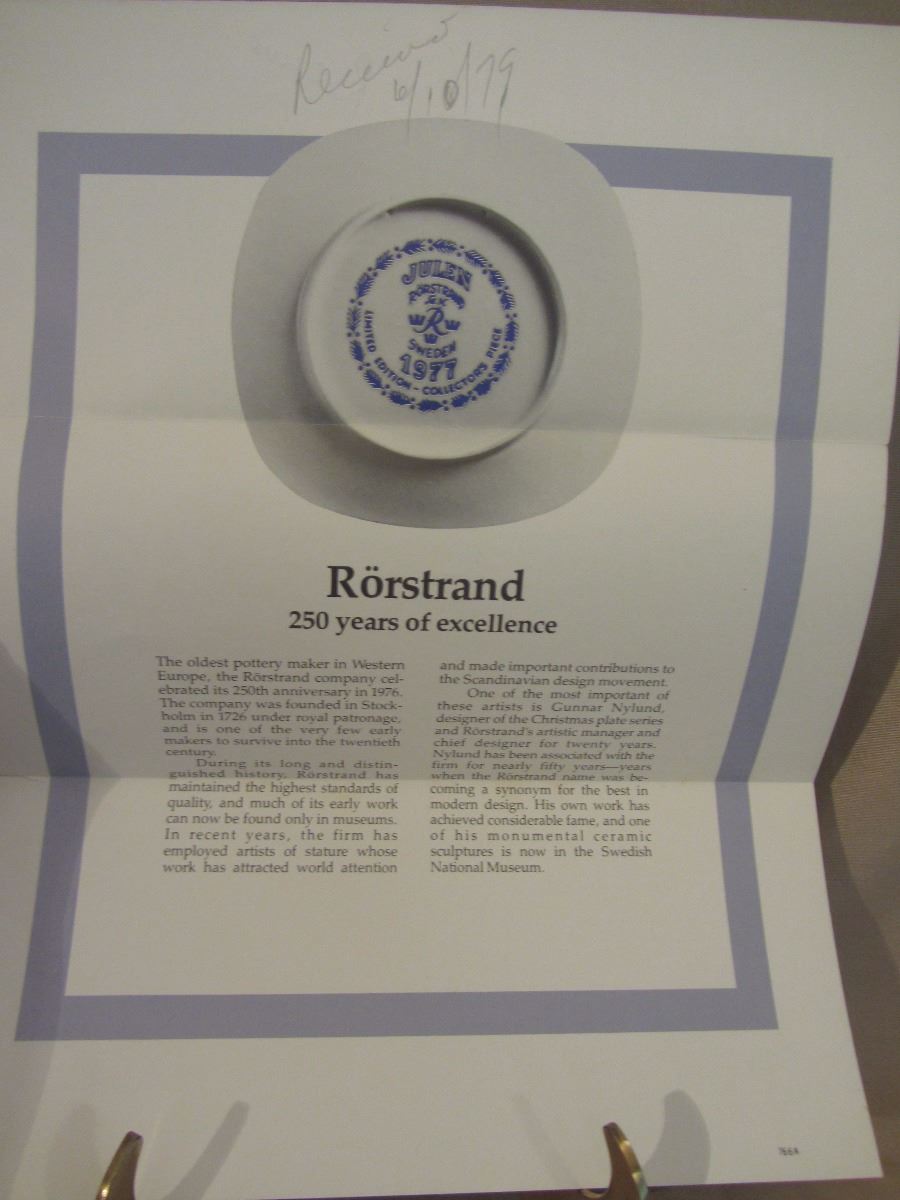 7 1/2" Squared Christmas Plate from 1977 'Wonderful Journey'. Plate is manufactured by Julen Rorstrand in Sweden and is a limited edition and is marked on the back as such. Comes in original box, and has paperwork. (Please see images for details)
