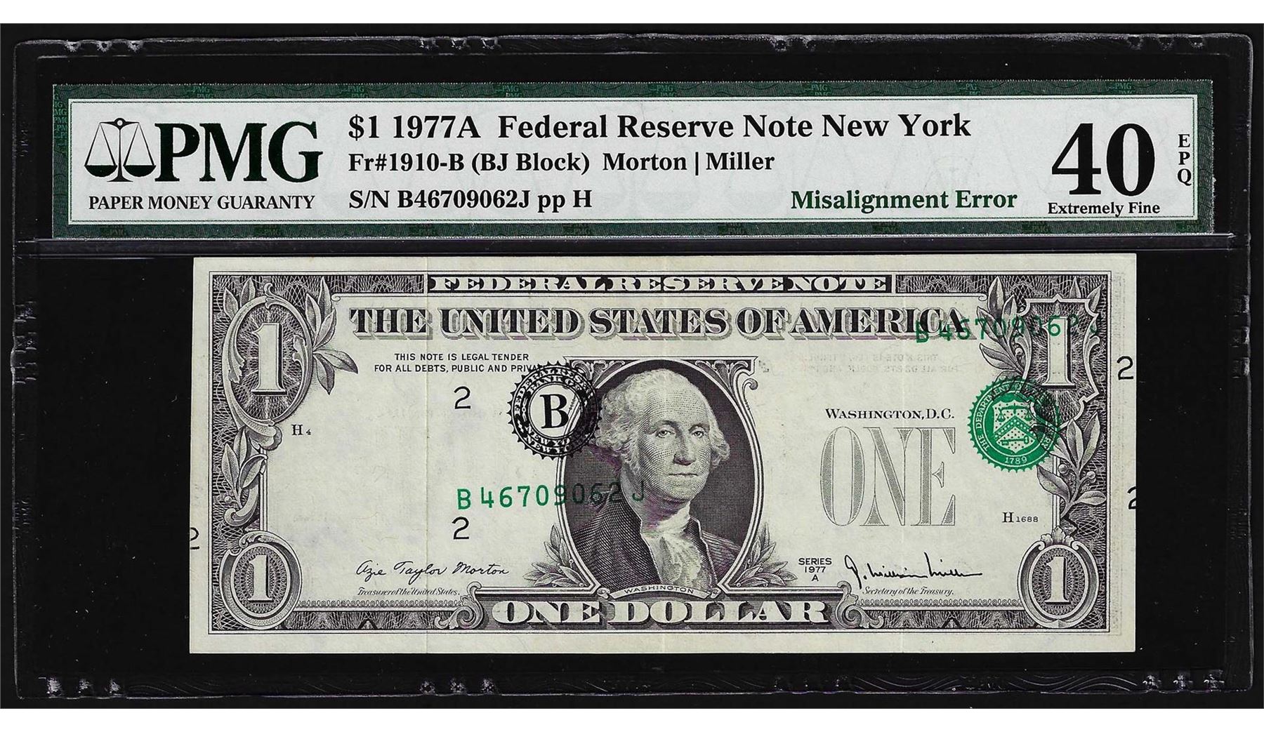1977A $1 Federal Reserve Note Misalignment ERROR PMG Extremely Fine 40EPQ
