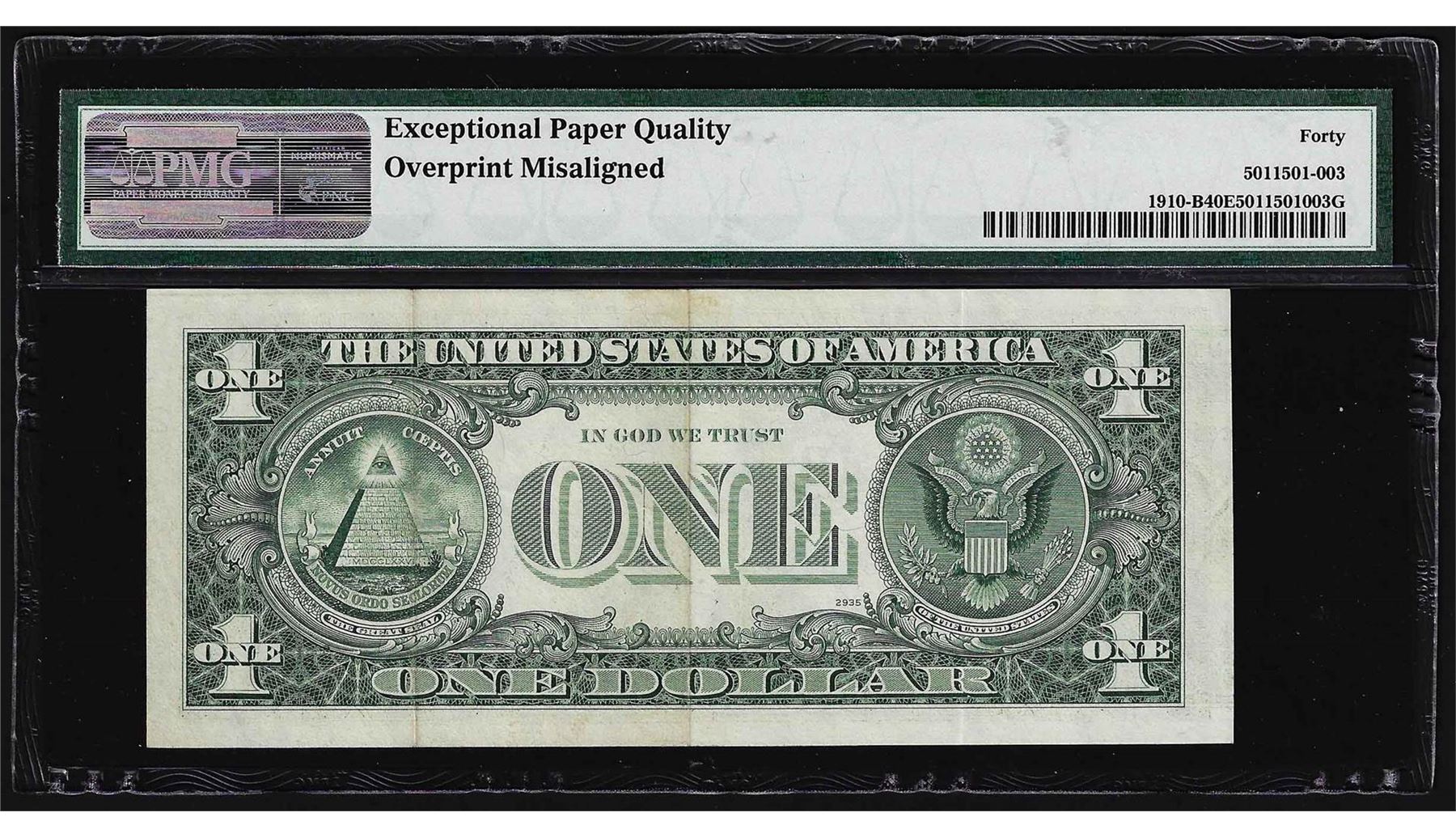 One 1977A $1 Federal Reserve Note Misalignment ERROR PMG Extremely Fine 40EPQ. PMG Certified.