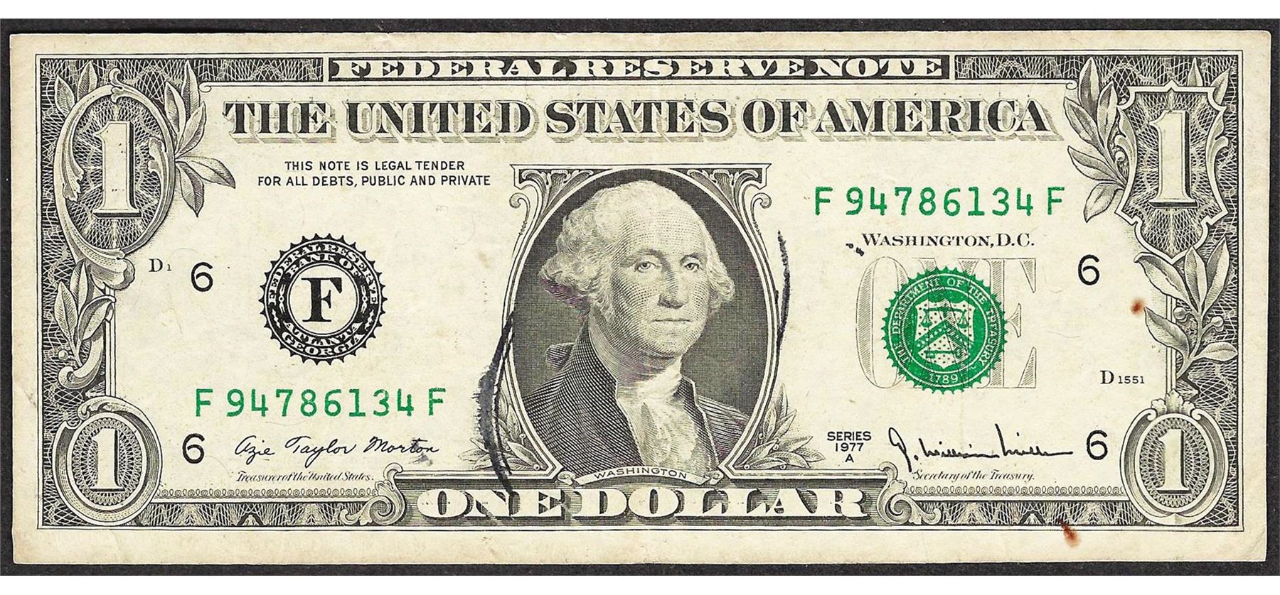 One 1977A $1 Federal Reserve Note Misalignment ERROR.